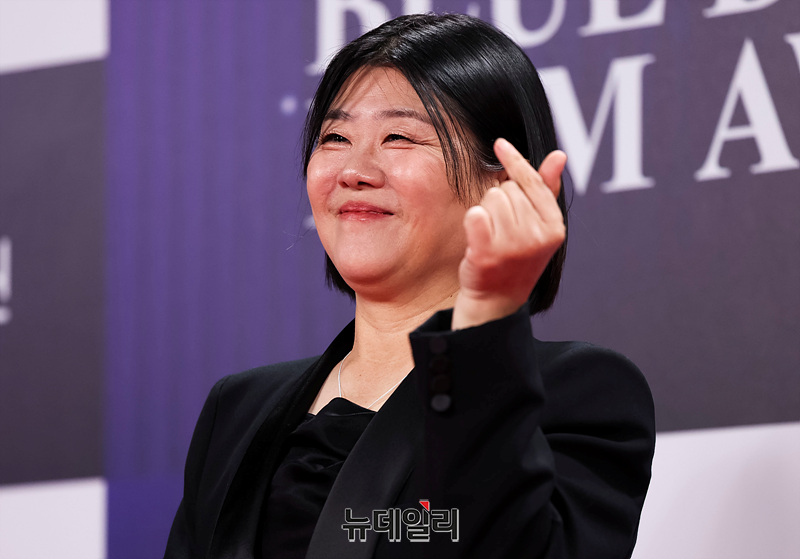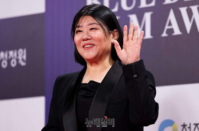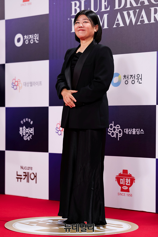 배우 이정은이 19일 오후 서울 여의도 KBS홀에서 열린 제46회 청룡영화상 시상식 레드카펫에서 포즈를 취하고 있다.