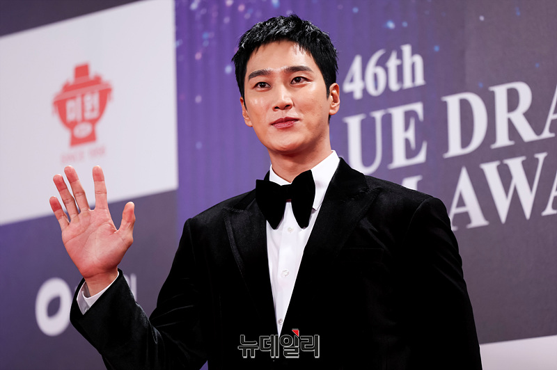 배우 안보현이 19일 오후 서울 여의도 KBS홀에서 열린 제46회 청룡영화상 시상식 레드카펫에서 포즈를 취하고 있다.