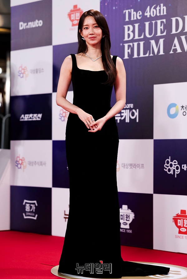 배우 신현빈이 19일 오후 서울 여의도 KBS홀에서 열린 제46회 청룡영화상 시상식 레드카펫에서 포즈를 취하고 있다.