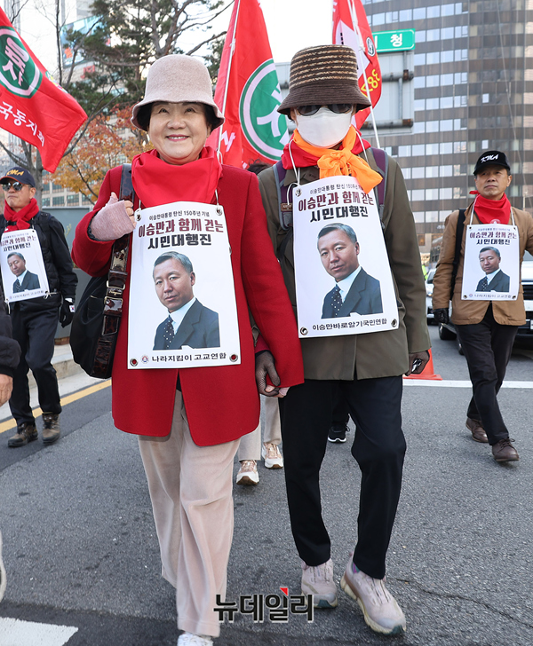 이날 행진은 이승만 건국 대통령 탄신 150주년을 기념해 이승만바로알기국민연합 주최로 열렸다. 행진은 서울광장에서 출발해 숭례문, 백범광장을 거쳐 남산 한국자유총연맹까지 진행된다.