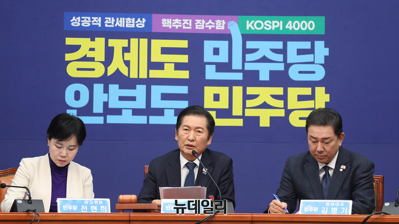 정청래 더불어민주당 대표가 24일 오전 국회에서 열린 최고위원회의에 참석해 모두발언을 하고 있다.