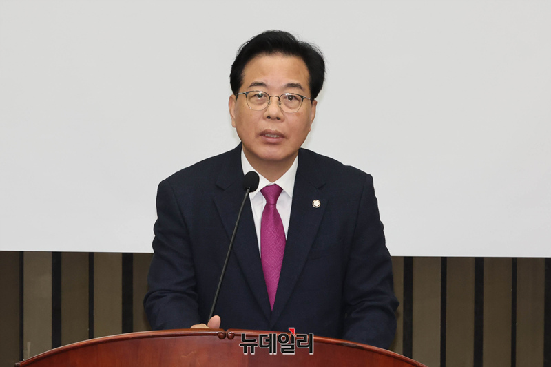 송언석 국민의힘 원내대표가 24일 오전 국회에서 열린 의원총회에서 모두발언을 하고 있다.