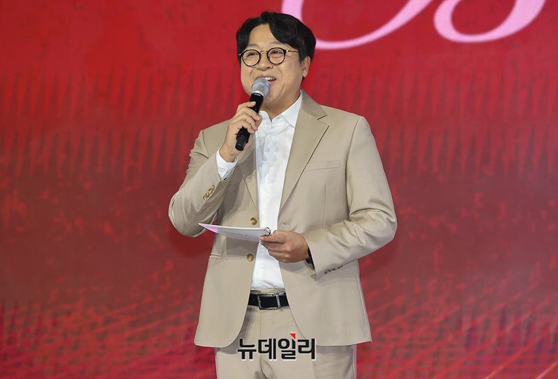 MC 허준이 24일 오후 서울 용산구 블루스퀘어에서 열린 걸그룹 트리플에스(tripleS) 새로운 디멘션 미소녀즈(msnz)의 앨범 'Beyond Beauty' 쇼케이스에서 인사말을 하고 있다.트리플에스 미소녀즈 moon은 설린, 지연, 소현, 카에데, 시온, 린으로 sun은 신위, 유연, 마유, 채원, 채연, 혜린으로 구성됐다. neptune에는 서연, 다현, 나경, 니엔, 코토네, 서아가, zenith에는 하연, 연지, 지우, 유빈, 주빈, 수민이 각각 합류했다.디멘션(DIMENSION)은 팬들의 선택으로 탄생하는 일종의 트리플에스 유닛, 그래비티(Gravity)는 공식 애플리케이션 코스모(COSMO)에서 팬들이 직접 진행하는 투표다.