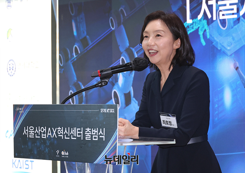 최호정 서울시의회 의장이 25일 오후 서울 서초구 서울AI허브 메인센터에서 열린 '서울 산업 AX 혁신센터'와 '서울 AI 혁신협의회' 출범식에서 인사말을 하고 있다.이번 출범식에서 산업, 대학, 연구, 스타트업이 함께 참여하는 서울형 산업 AI 전환 생태계의 본격 가동을 선언했다.두 기관은 AI 기술도입-컨설팅-실증-확산까지 전 과정을 서울 안에서 처리할 수 있는 '완결형 실행 체계'를 구성해 산업 현장의 문제를 AI로 해결하는 실행 중심 플랫폼으로 기능하게 된다.