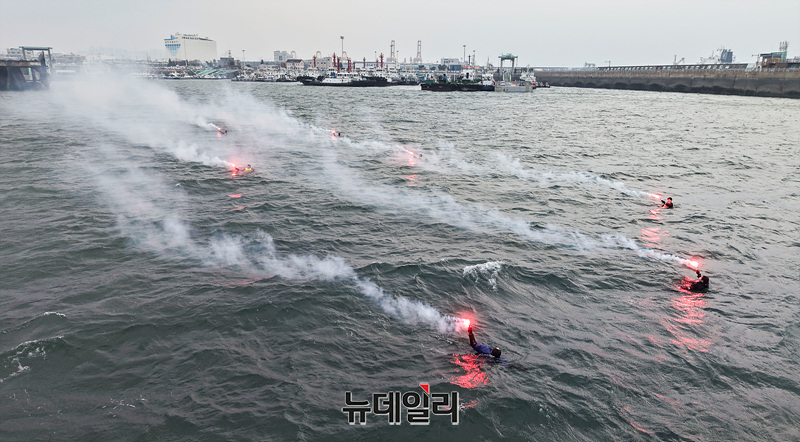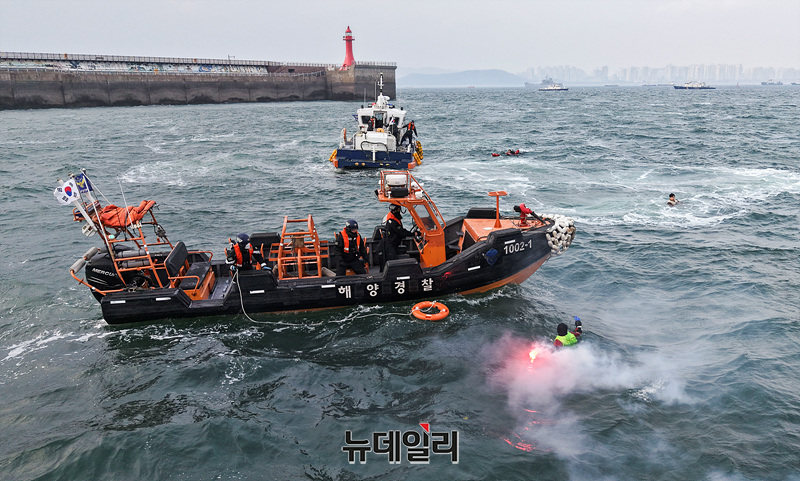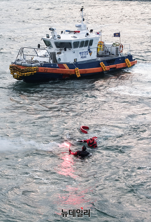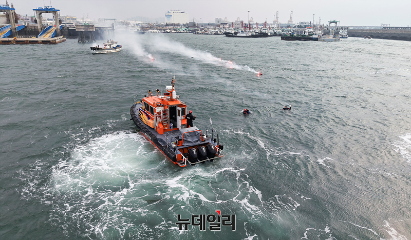 레디코리아 4차 훈련이 진행중인 25일 오후 인천 중구 인천연안여객터미널 앞 해상에서 구조 훈련이 진행되고 있다.