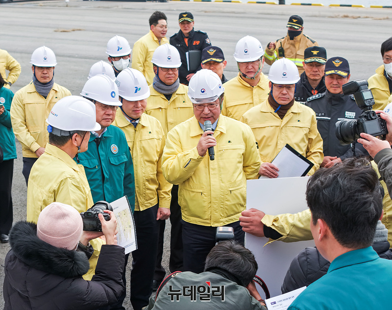 윤호중 행정안전부 장관이 25일 오후 인천 중구 인천연안여객터미널에서 열린 레디코리아 4차 훈련에서 발언하고 있다.