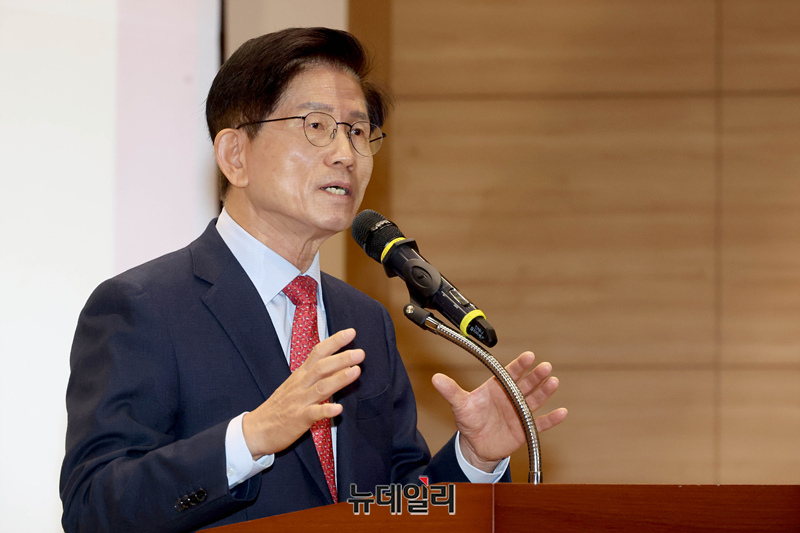 국민의힘 대선후보였던 김문수 전 고용노동부 장관이 26일 오전 국회 의원회관에서 열린 사단법인 '건국이념보급회·이승만포럼(회장 인보길) 제작 다큐멘터리 영화 '독립외교 40년: 이승만의 외로운 투쟁' 시사회에서 축사를 하고 있다.우남소사이어티(회장 유명환), 한미동맹재단(이사장 유명환), (재)이승만대통령기념재단(이하 '이승만재단', 이사장 김황식)과 국민들의 후원으로 제작된 다큐멘터리는 대한의 독립을 위해 국제외교무대에서 고군분투한 이승만의 40년간 행적을 재조명한다.