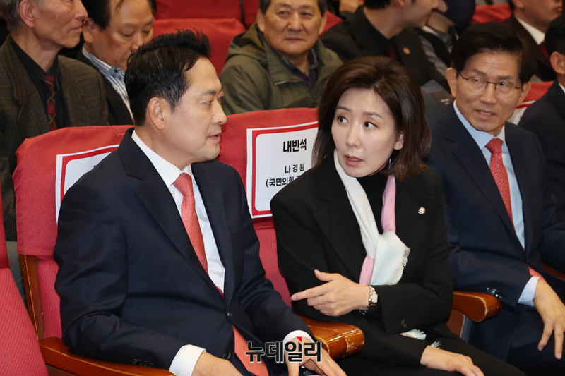 장동혁 국민의힘 대표와 나경원 의원이 26일 오전 국회 의원회관에서 열린 사단법인 '건국이념보급회·이승만포럼(회장 인보길) 제작 다큐멘터리 영화 '독립외교 40년: 이승만의 외로운 투쟁' 시사회에서 대화를 나누고 있다.우남소사이어티(회장 유명환), 한미동맹재단(이사장 유명환), (재)이승만대통령기념재단(이하 '이승만재단', 이사장 김황식)과 국민들의 후원으로 제작된 다큐멘터리는 대한의 독립을 위해 국제외교무대에서 고군분투한 이승만의 40년간 행적을 재조명한다.