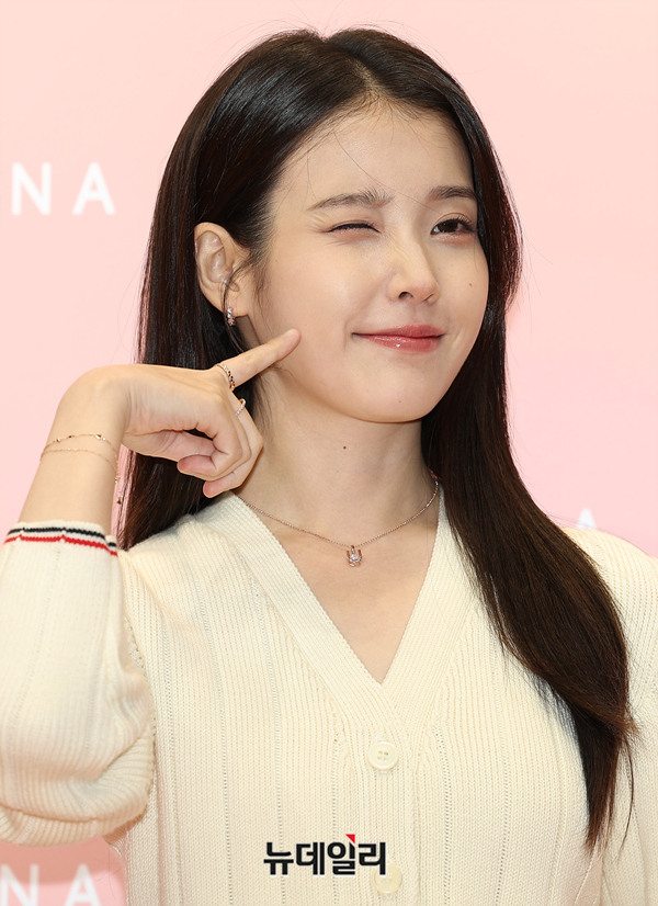 아이유가 26일 오후 서울 송파구 롯데백화점 잠실점에서 열린 제이에스티나 팝업스토어 'J&U Archive' 오픈 행사에 입장하고 있다.