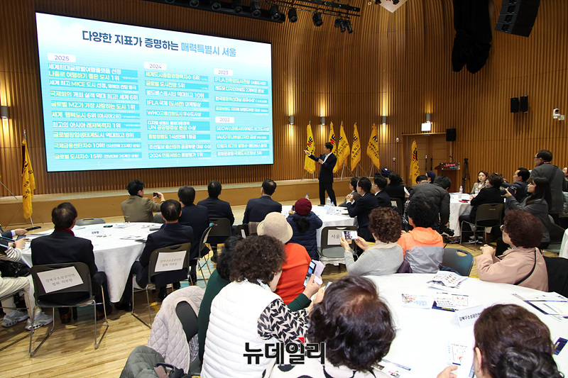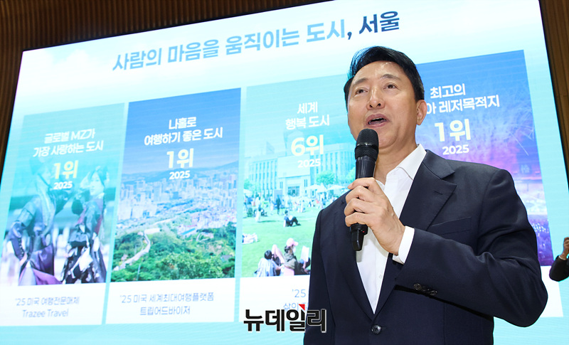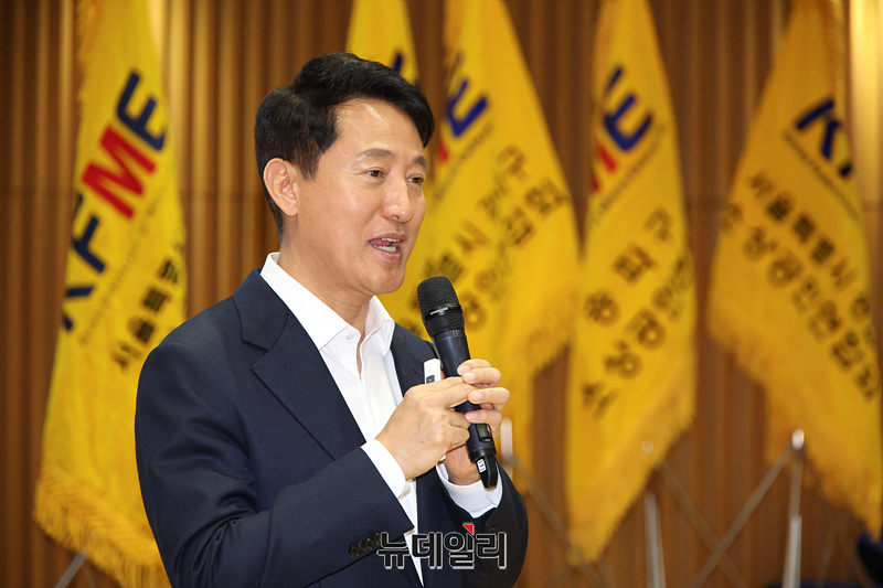 오세훈 서울시장이 26일 오후 서울 중구 서울시청에서 열린 2025 서울시소상공인연합회 역량강화 워크숍에서 강연을 하고 있다.
