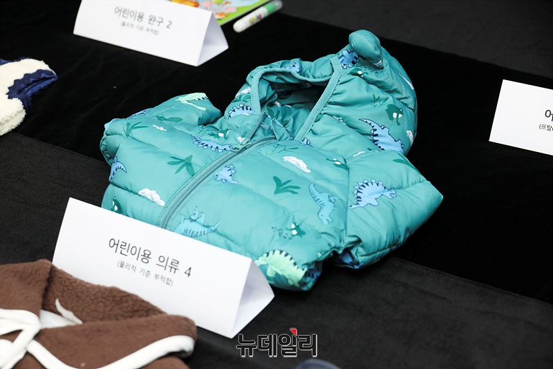서울시가 27일 오전 서울 중구 서울시청에서 해외 온라인 플랫폼 안전성 조사 부적합 제품을 공개하고 있다.2024년 4월부터 진행된 이번 점검은 테무, 알리익스프레스 등 해외 온라인 플랫폼에서 판매되는 어린이 제품을 대상으로 서울특별시 공정경제과가 조사기관으로, 한국건설생활환경시험연구원(KCL), KATRI시험연구원, FITI시험연구원이 시험기관으로 참여했다.조사 결과 어린이 방한용품 1개, 의류 4개, 완구 2개, 머리빗 1개 등 다수 제품에서 안전 기준에 미달하는 부적합 사항이 확인됐다.