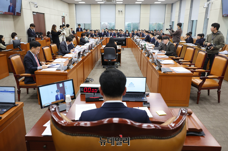 신정훈 행정안전위원회 위원장이 27일 국회에서 열린 행정안전위원회 전체회의에서 의사봉을 두드리고 있다.