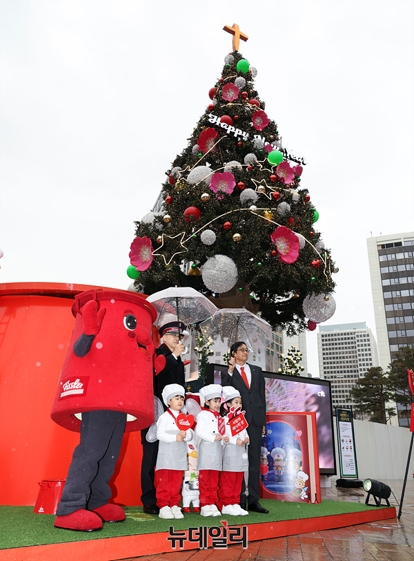 이경우 휘슬러코리아 대표와 김병윤 한국 구세군 사령관이 27일 오전 서울 중구 서울광장에서 열린 '2025 사랑의 레시피 팟 자선냄비 전달식'에서 기념촬영을 하고 있다.이번에 기증된 사랑의 레시피 팟 체험관은 1891년 미국의 한 부두에서 시작된 자선냄비의 기원처럼 '작은 온기가 세상을 변화시킨다'는 메시지에서 출발해 기획됐다. 시민의 참여로 따뜻함이 끓어오르는 순간을 상징하는 초대형 사랑의 레시피 팟, 요리 요정 조형물, 자선냄비의 유래를 담은 스토리북, 나눔 참여를 독려하는 체험형 포토존 등이 함께 구성됐다.시민 누구나 방문해 직접 기부에 참여하고 나눔의 의미를 체험할 수 있는 '사랑의 레시피 팟 체험관'은 이날 전달식을 시작으로 1월 중순까지 서울광장에서 운영된다.