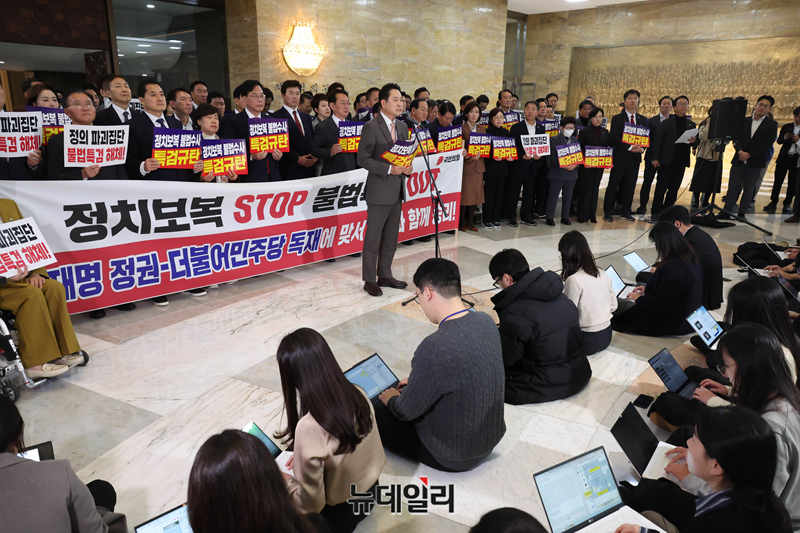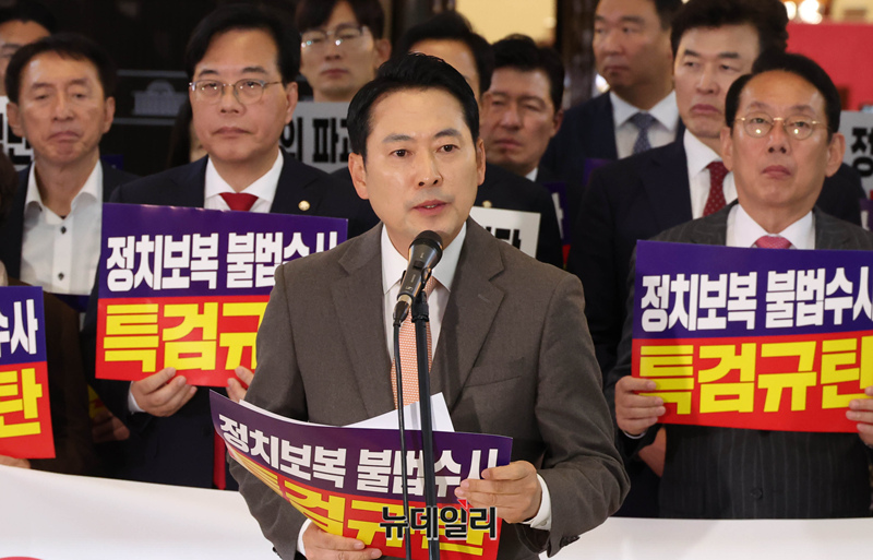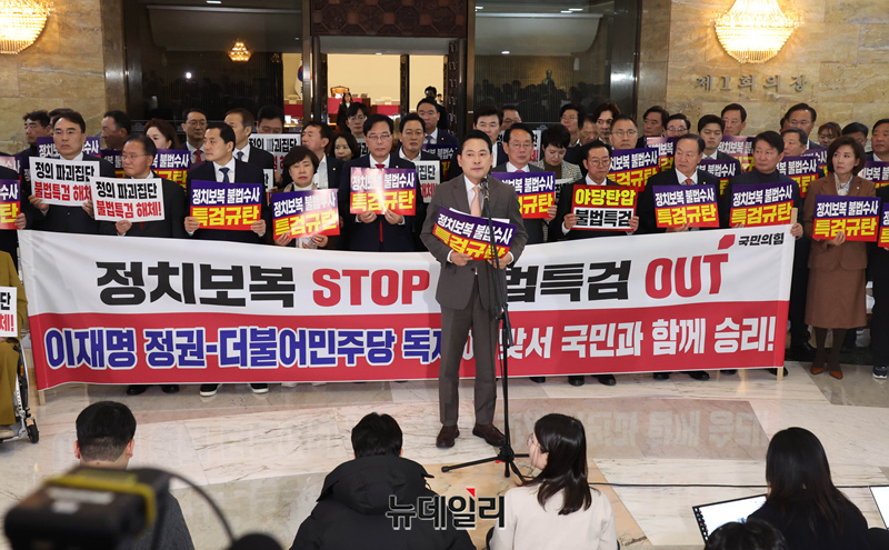 [포토] 특검 규탄사 하는 장동혁 국민의힘 대표