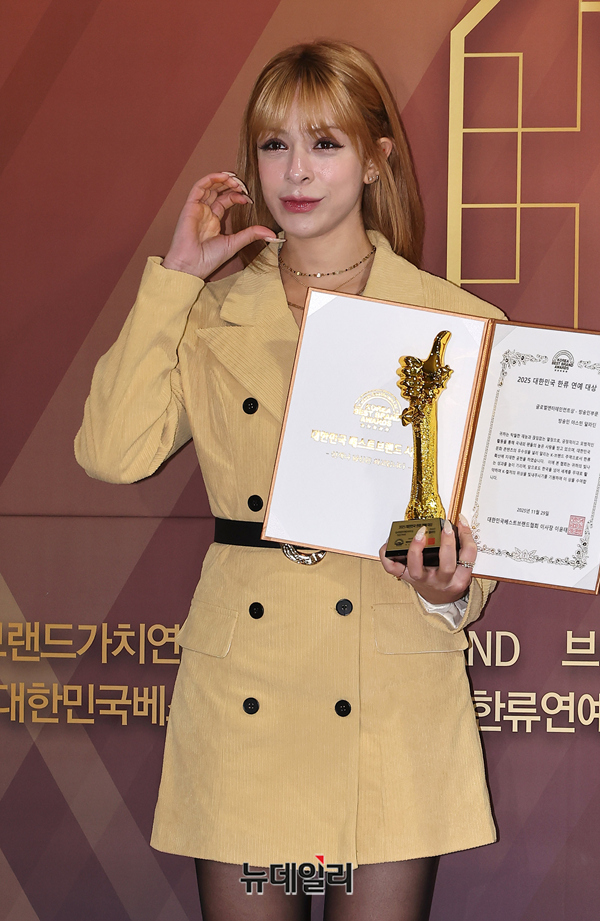 방송인 야스민 알라딘이 29일 오후 서울 여의도 국회의원회관에서 열린 '2025 대한민국 한류연예대상'에서 포즈를 취하고 있다. 이번 시상식은 대한민국 베스트브랜드협회 주최, 브랜드가치연구소 주관으로 각 분야 스타들의 공로를 인정하고 축하하는 행사다.