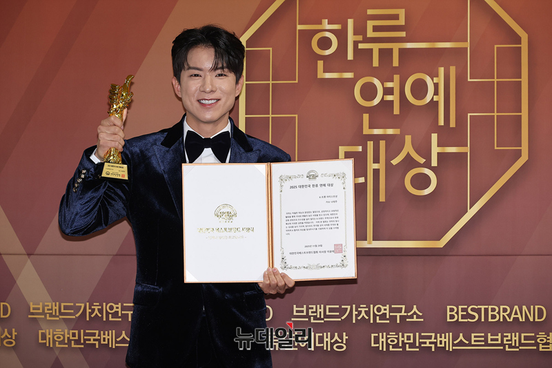 가수 나태주가 29일 오후 서울 여의도 국회의원회관에서 열린 '2025 대한민국 한류연예대상'에서 포즈를 취하고 있다. 이번 시상식은 대한민국 베스트브랜드협회 주최, 브랜드가치연구소 주관으로 각 분야 스타들의 공로를 인정하고 축하하는 행사다.