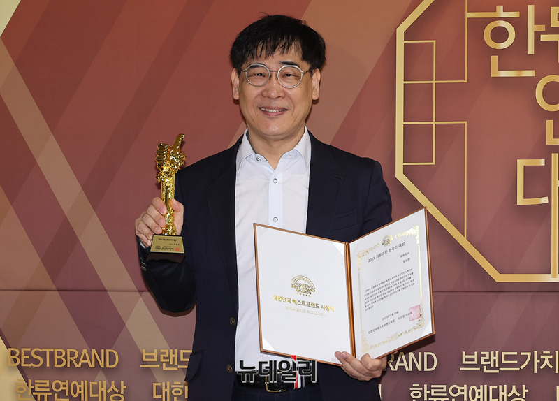 컬투 정성한 프로듀서가 29일 서울 여의도 국회의원회관에서 열린 '2025 대한민국 한류연예대상'에서 포즈를 취하고 있다. 이번 시상식은 대한민국 베스트브랜드협회 주최, 브랜드가치연구소 주관으로 각 분야 스타들의 공로를 인정하고 축하하는 행사다.