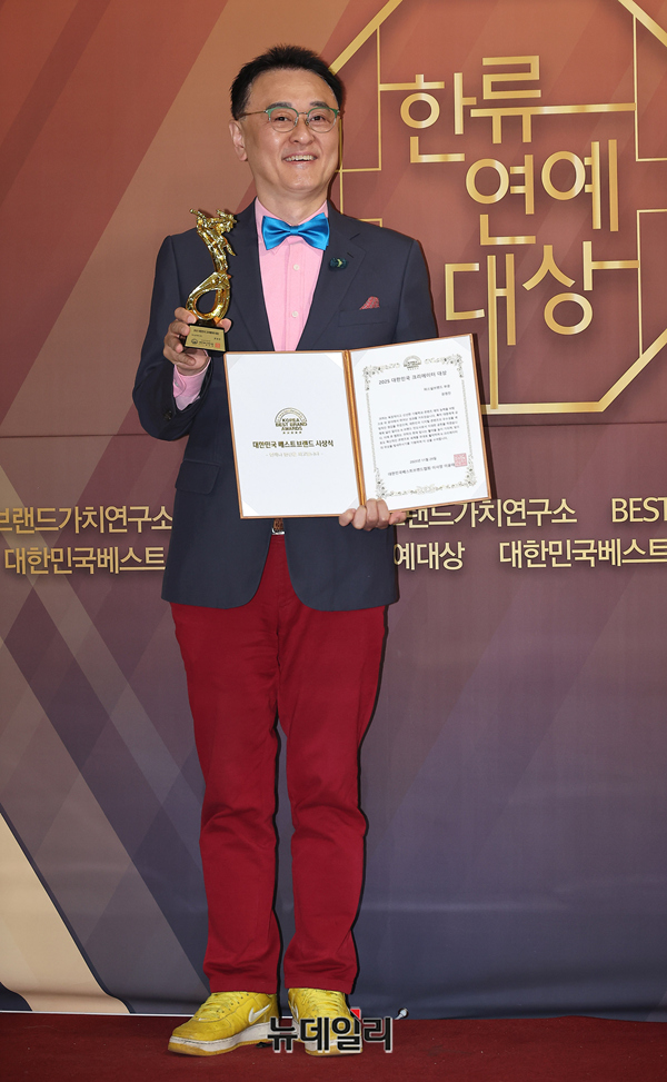 개그맨 권영찬이 29일 서울 여의도 국회의원회관에서 열린 '2025 대한민국 한류연예대상'에서 포즈를 취하고 있다. 이번 시상식은 대한민국 베스트브랜드협회 주최, 브랜드가치연구소 주관으로 각 분야 스타들의 공로를 인정하고 축하하는 행사다.