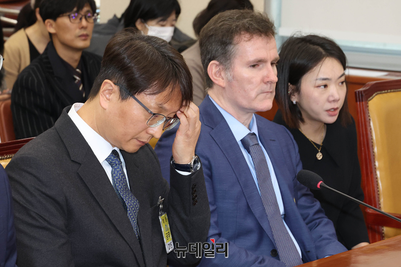 박대준 쿠팡 대표이사가 2일 국회에서 열린 과학기술정보방송통신위원회의 쿠팡 개인정보 유출 사고 관련 현안질의에서 의원 질의를 굳은 얼굴로 듣고 있다.