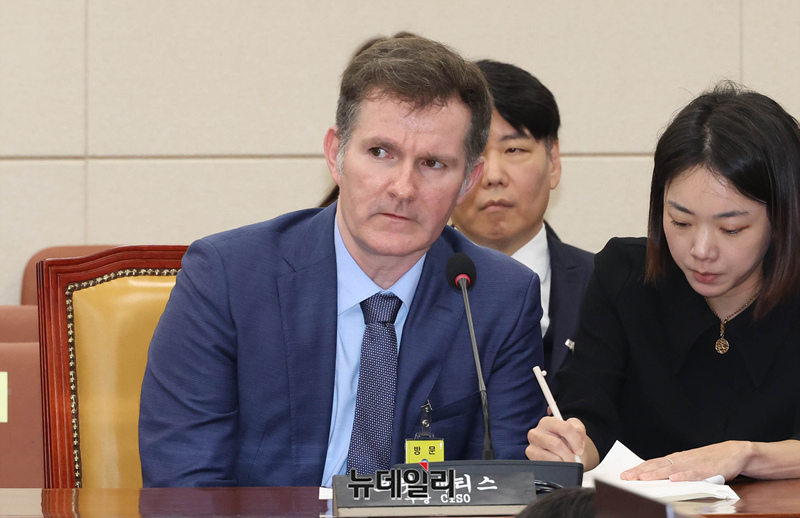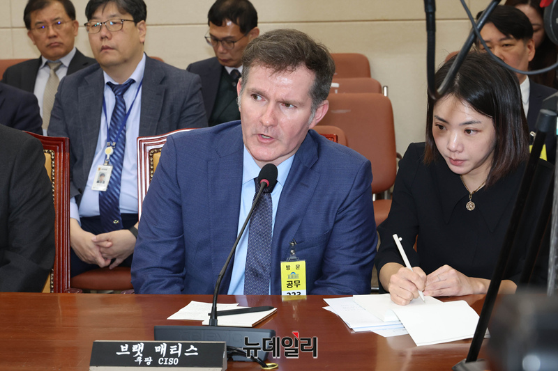 브랫 매티스 쿠팡 CISO가 2일 국회에서 열린 과학기술정보방송통신위원회의 쿠팡 개인정보 유출 사고 관련 현안질의에서 의원 질의에 답하고 있다.