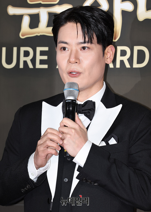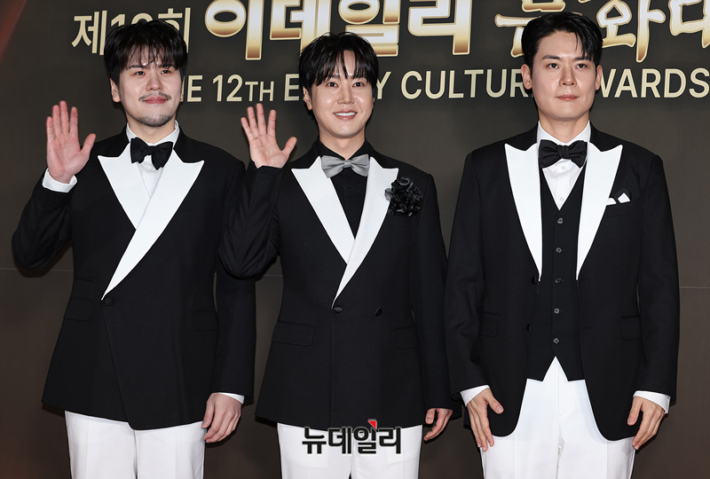 라포엠 정민성, 유채훈, 최성훈이 2일 오후 서울 종로구 세종문화회관에서 열린 제12회 이데일리 문화대상 시상식에서 포즈를 취하고 있다.