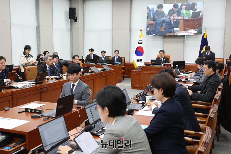 김병기 국회 운영위원장이 3일 국회에서 열린 운영위원회 전체회의에서 의사진행을 하고 있다.