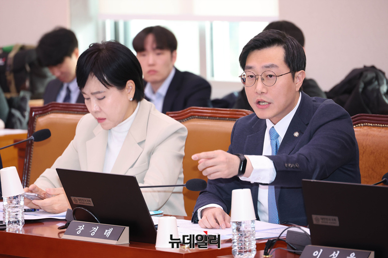 장경태 더불어민주당 의원이 3일 오전 국회에서 열린 법제사법위원회 전체회의에서 발언을 하고 있다.