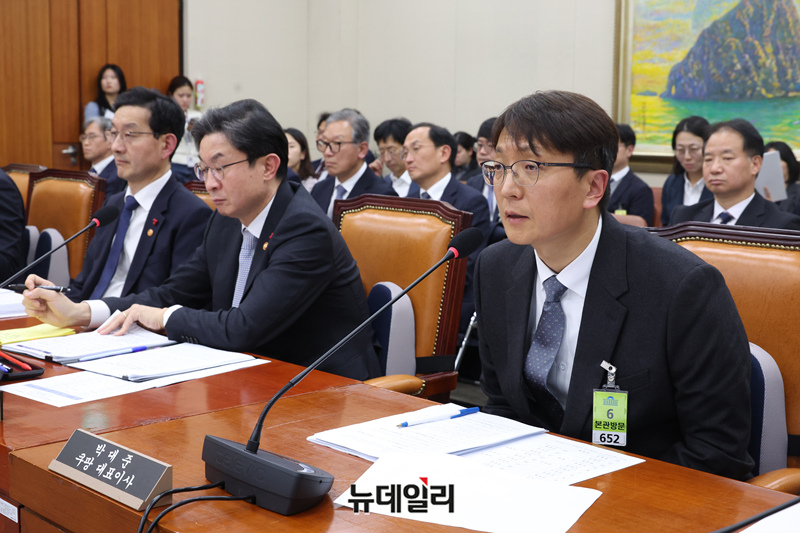 박대준 쿠팡 대표이사가 3일 국회에서 열린 정무위원회의 쿠팡 개인정보 유출 관련 현안질의에서 의원들의 질의에 답하고 있다.