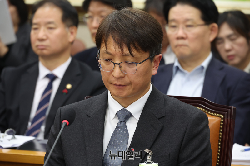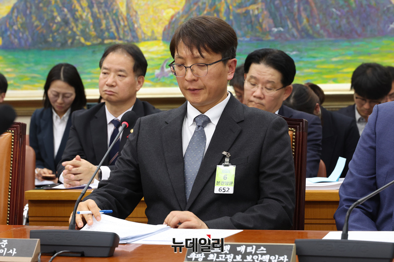 박대준 쿠팡 대표이사가 3일 국회에서 열린 정무위원회의 쿠팡 개인정보 유출 관련 현안질의에서 굳은 표정으로 의원들의 질의를 듣고 있다.