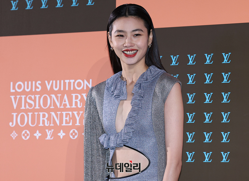 모델 정호연이 3일 오후 서울 중구 신세계 더 리저브에서 열린 '루이비통 비저너리 저니 서울' 오프닝 행사에서 포즈를 취하고 있다.