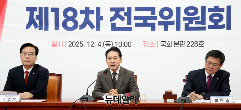 장동혁 국민의힘 대표가 4일 오전 국회에서 열린 제18차 전국위원회에서 발언을 하고 있다.
