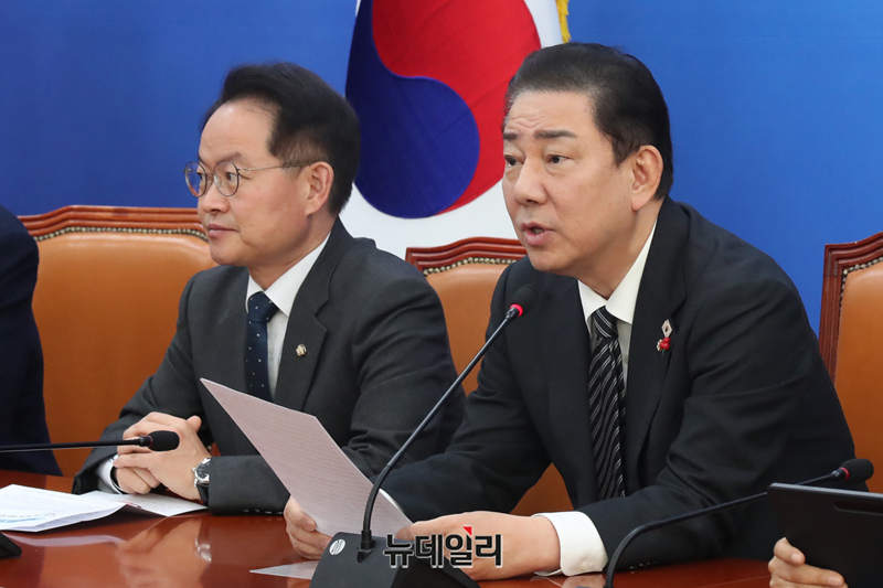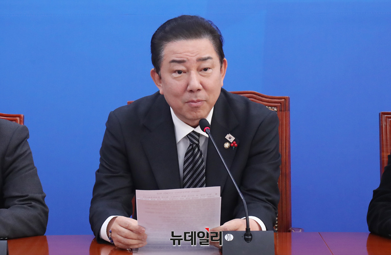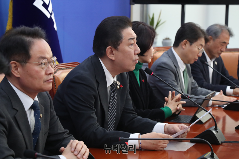 김병기 더불어민주당 원내대표가 4일 오전 국회에서 열린 정책조정회의에서 발언을 하고 있다.