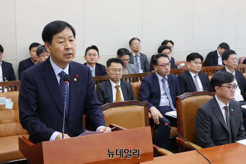 구윤철 경제부총리 겸 기획재정부 장관이 4일 오전 국회에서 열린 기획재정위원회 전체회의에서 법안 통과 후 인사말을 하고 있다.