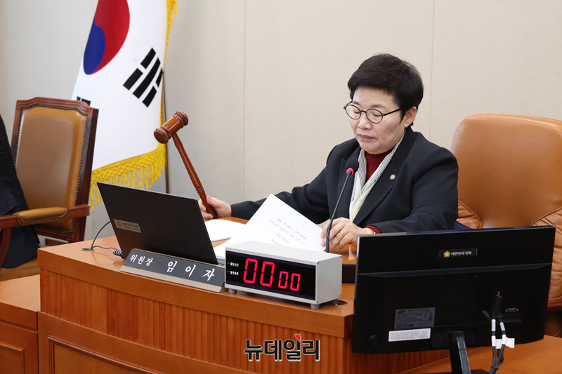 임이자 위원장이 4일 국회에서 열린 기획재정위원회 전체회의에서 국유재산법 개정안 등 법안을 의결하며 의사봉을 두드리고 있다.