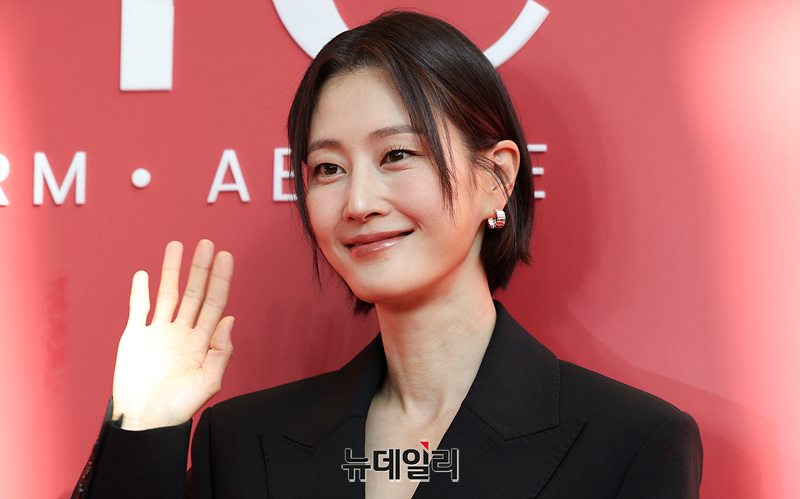 모델 이현이가 8일 오후 서울 여의도 FKI 타워에서 열린 AHC 신제품 '풀 리프트 아이크림 포 페이스' 론칭 행사 포토월에서 포즈를 취하고 있다.