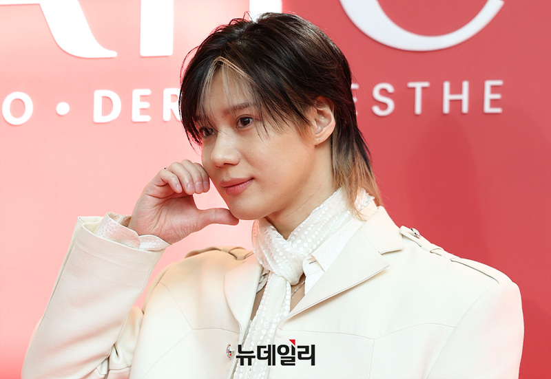 샤이니 태민이 8일 오후 서울 여의도 FKI 타워에서 열린 AHC 신제품 '풀 리프트 아이크림 포 페이스' 론칭 행사 포토월에서 포즈를 취하고 있다.