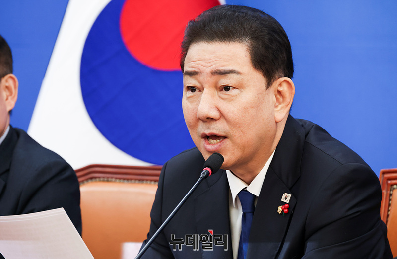 김병기 더불어민주당 원내대표가 9일 오전 서울 여의도 국회에서 열린 원내대책회의에서 모두발언을 하고 있다.