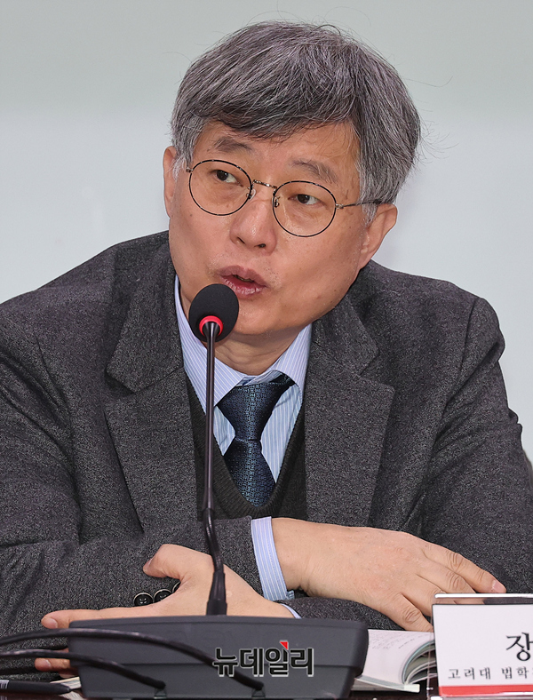 장영수 고려대 법학전문대학원 명예교수가 10일 오후 국회의원회관에서 열린 '국가보안법 폐지, 누구를 위한 것인가' 토론회에서 발제를 하고 있다.이날 토론회는 이성권, 서천호 국회의원의 주최로 이인호 중앙대 교수가 좌장을 맡았다. 발제는 '국가보안법 폐지 법률안의 헌법적 문제점'을 주제로 장영수 고려대 명예교수가 맡았다.어어진 토론에는 남성욱 고려대 교수, 유동열 자유민주연구원장, 박주현 전 경찰수사연구원 안보수사학과장, 최기식 변호사가 나섰다.