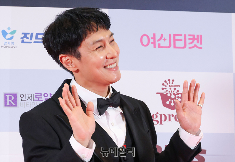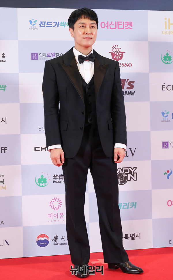 신화 김동완이 10일 오후 서울 용산구 드래곤시티에서 열린 '2025 서울국제영화대상' 레드카펫 행사에서 포즈를 취하고 있다.