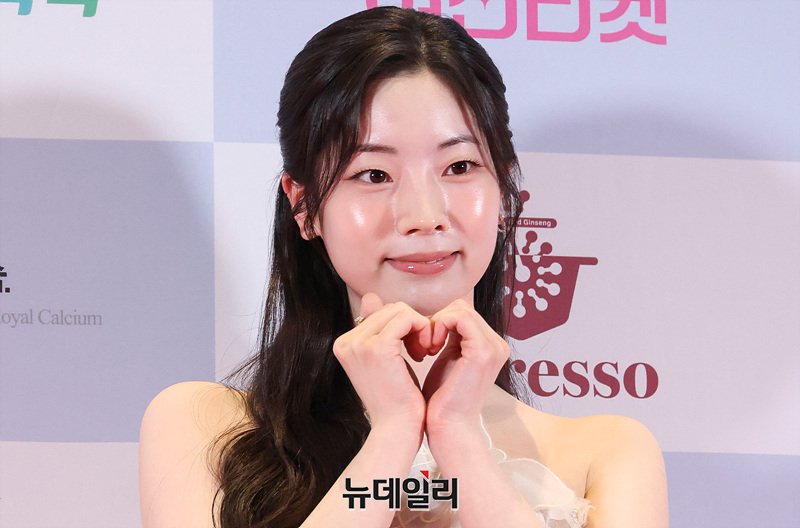 트와이스 다현이 10일 오후 서울 용산구 드래곤시티에서 열린 '2025 서울국제영화대상' 레드카펫 행사에서 포즈를 취하고 있다.