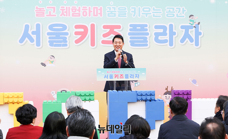 오세훈 서울시장이 12일 오후 서울 강서구 서울키즈플라자 개관식에서 축사를 하고 있다.
