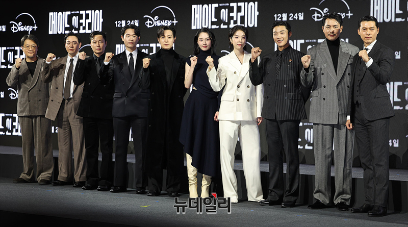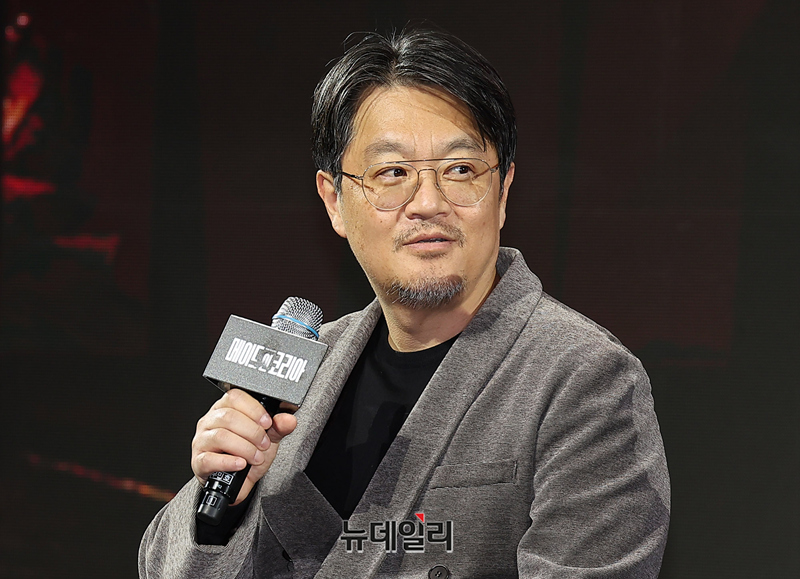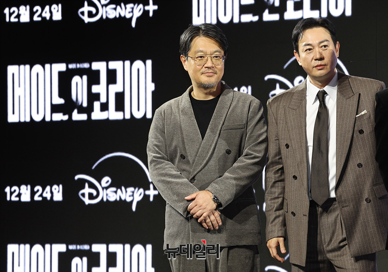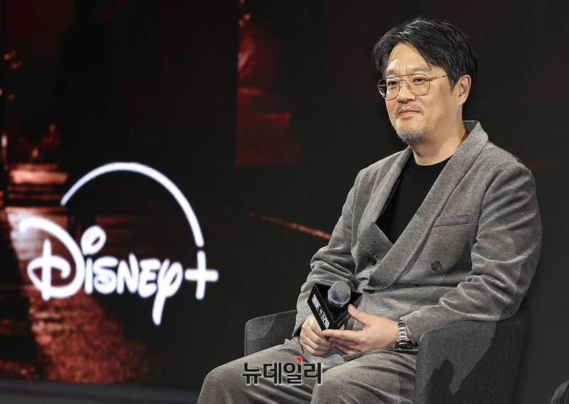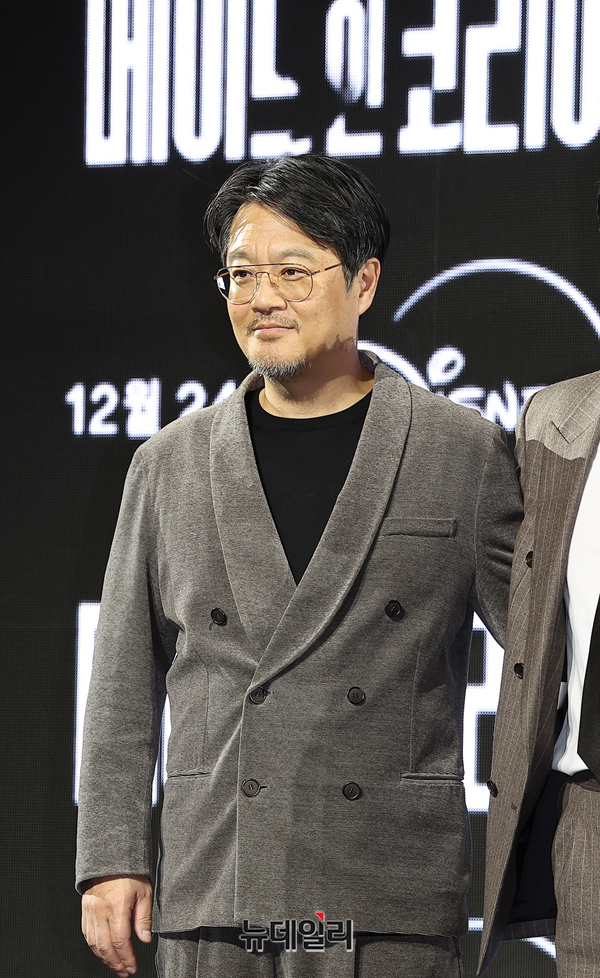 연출을 맡은 우민호 감독이 15일 오전 서울 강남구 그랜드 인터컨티넨탈 서울 파르나스에서 열린 디즈니+ '메이드인코리아(감독 우민호)' 제작보고회에서 포즈를 취하고 있다.'메이드 인 코리아'는 1970년대 혼란과 도약이 공존했던 대한민국, 국가를 수익모델로 삼아 부와 권력의 정점에 오르려는 사내 ‘백기태’(현빈)와 그를 무서운 집념으로 벼랑 끝까지 추적하는 검사 ‘장건영’(정우성)이 시대를 관통하는 거대한 사건들과 직면하는 이야기다.배우 현빈, 정우성, 우도환, 조여정, 서은수, 원지안, 정성일, 강길우, 노재원, 박용우 등이 출연한다. 총 6회로 12월 24일 첫 공개 이후 매주 수요일 순차 공개된다.