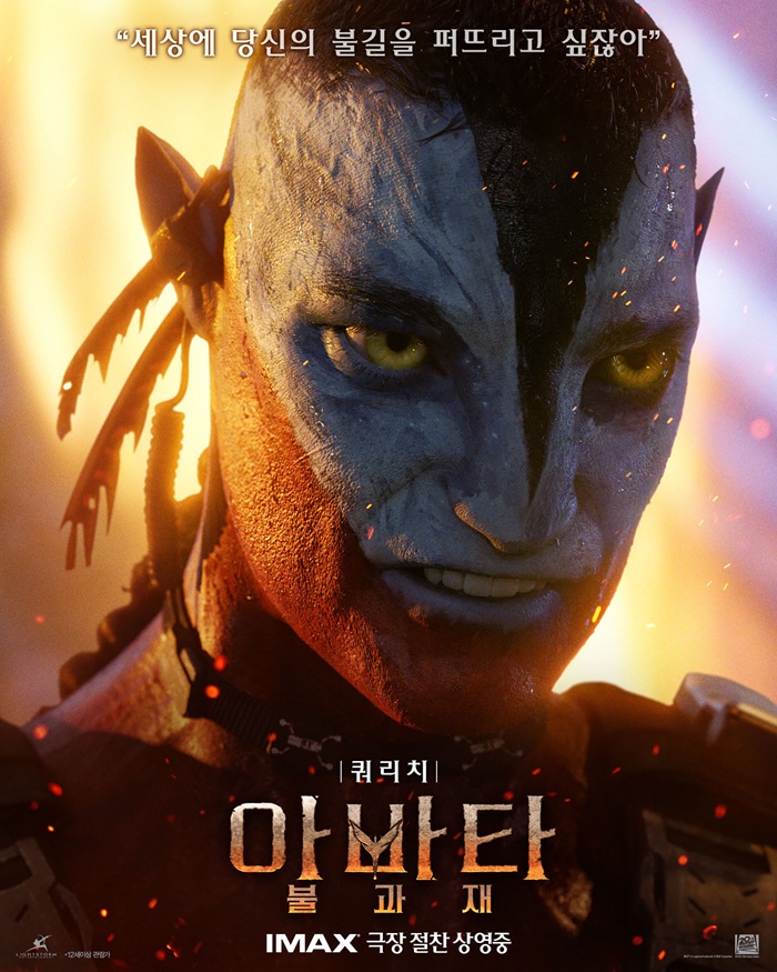 '아바타' 시리즈 3번째 작품 드디어 개봉예매량 59만 장 돌파, 연말 극장가 강타 예고전설의 한 페이지를 쓸 캐릭터 포스터 공개
