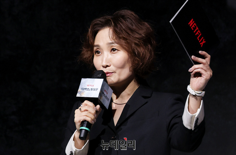 MC 박경림이 17일 오전 서울 종로구 JW메리어트동대문스퀘어에서 넷플릭스 예능 '흑백요리사: 요리 계급 전쟁2'을 소개하고 있다.