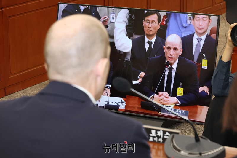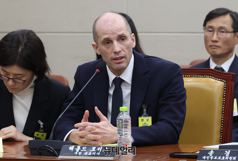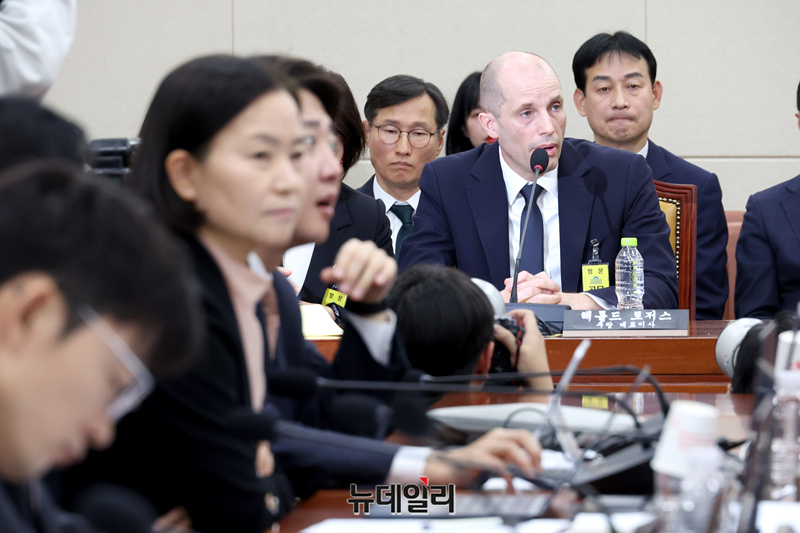 해롤드 로저스 쿠팡 임시 대표가 17일 오전 국회 과학기술정보방송통신위원회 전체회의에서 열린 쿠팡 침해사고 관련 청문회에서 질의에 답하고 있다.