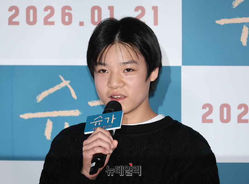 아역배우 고동하가 18일 오전 서울 CGV용산아이파크몰에서 열린 영화 '슈가(감독 최신춘)' 제작보고회에서 인사말을 하고 있다.
