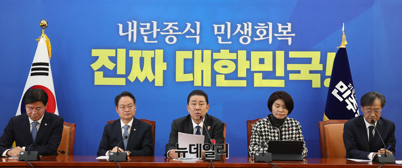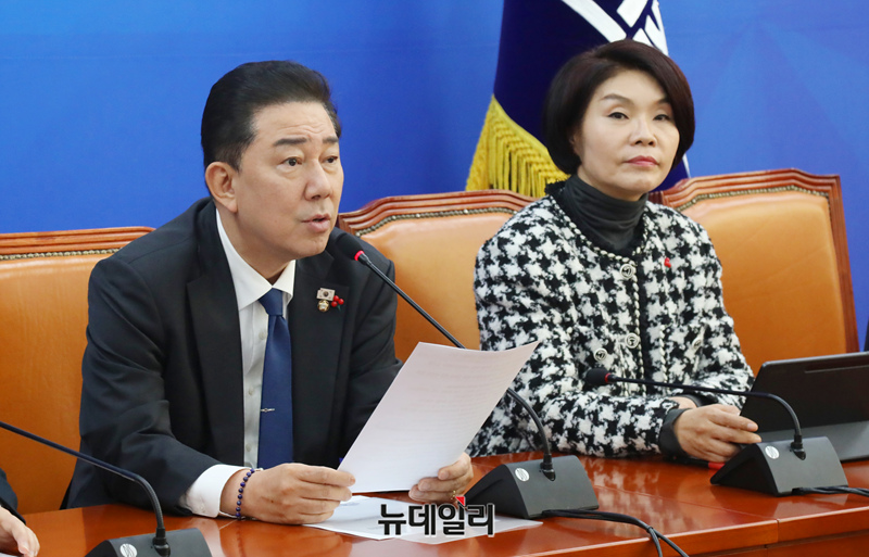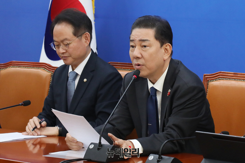 김병기 더불어민주당 원내대표가 18일 오전 국회에서 열린 정책조정회의에서 모두발언을 하고 있다.