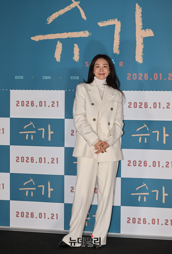 배우 최지우가 18일 오전 서울 CGV용산아이파크몰에서 열린 영화 '슈가(감독 최신춘)' 제작보고회에서 포즈를 취하고 있다.