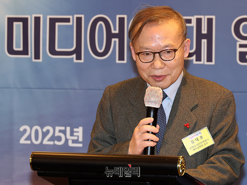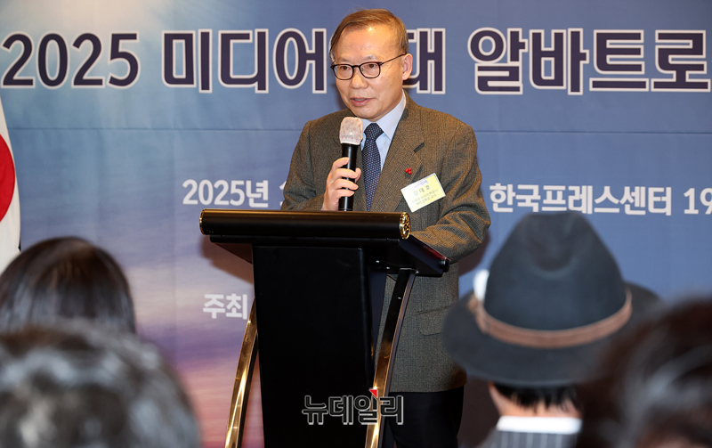 김대호 인하대 명예교수가 18일 오후 서울 중구 한국프레스센터에서 열린 '2025 미디어연대 알바트로스상 시상식'에서 심사평을 하고 있다.'미디어연대 알바트로스상'은 언론시민단체 미디어연대가 미디어를 비롯해 경제·문화·예술·교육·시민사회 등 각 분야에서 자유와 공정의 가치를 드높이며 탁월한 역할을 수행한 인물을 선정해 시상하는 상이다.올해 알바트로스상 수상자는 △윤정호 TV조선 뉴스9 앵커 △이기홍 전 동아일보 대기자가 알바트로스 특별상 수상자는 △이진숙 전 방송통신위원장 △임영순 ㈜부성그룹 회장이 각각 선정됐다.