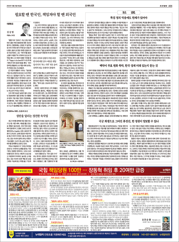 ■ 엄청난 사건국민의힘 책임당원이 이달 중 100만 명을 넘을 것이 확실시된다.국힘은 일반당원이 매월 1000원 이상의 당비를 3개월간 납부하면 경선 투표권이 있는 책임당원이 된다.한국 정치사에서 우파정당이《책임당원 100만 시대》를 맞는 것은 사상 처음이어서 의미가 크다.국민의힘 책임당원은 윤석열 정부 출범 다음해인 2023년 말 91만명 대까지 늘었다.그러다 지난해 ① 4.10 총선 참패 와 ② 윤 대통령 탄핵소추안 국회 가결, 올해 4월 ③ 헌법재판소 탄핵 결정 과 6월 ④ 조기대선 패배 로 70만명 대 초반까지 급락 했다.특히 정통우파 이념이 강한 핵심 지지층 당원 상당수가 국힘 행태에 실망해 당을 떠났다.지난 8월 말 국힘 전당대회 당시 책임당원 수는 75만 명이었다.그랬던 국힘이 장동혁 신임 당대표 체제가 들어선 뒤 불과 3개월 여 만에 20만 명 이상원이 급증한 것이다.이는 엄청난《사건》이다.역대 우파정당 대표 중 대통령과 당총재를 겸했던 이승만 박정희 전두환 김영삼, 당대표를 거쳐 대통령에 당선된 박근혜, 대통령은 못되었지만 당대표를 지낸 이회창 홍준표 황교안 이준석 김기현 한동훈 등 그 누구도 못했던 일이다.《책임당원 100만 명 우파정당》을 만들어낸 첫 당대표라는 역사적 기록은 장동혁이 갖게 됐다.■ 좌파정당은 170만국힘으로 대표되는 한국의 우파정당은 더불어민주당으로 대표되는 좌파정당에 비해 당원 중심 정당 성격이 취약 하다.국힘의 책임당원에 해당하는 민주당의 권리당원은 170만 명에 이르는 것으로 알려져 있다.특히 민주당의 텃밭인 호남 지역과 호남 출신이 많은 수도권에 당원들이 집중돼 있다.민주당의 권리당원들은 선거 때마다 결정적인 영향을 행사한다.홍석준 전(前) 의원의 설명에 따르면, 민주당 경선의 경우 예비경선은 100% 당원들에 의해 이뤄진다.당원들에게 인정받지 못하면 아예 예비경선을 통과할 수 없다.이어 본경선은 권리당원 50%, 일반국민 여론조사 50%다.산술적으로 예비경선과 본경선을 합하면 당심이 약 75%를 차지한다는 이야기다.이러니 민주당 국회의원이나 당협위원장 등이 당원들을 무서워하지 않을 수 없다.국힘과는 달라도 너무 다르다.■ "장동혁-김민수 지킨다"국힘 전당대회 후 새로 입당한 신규 당원들을 분석해보면, 우파정당의 전통적 기반인 영남 지역은 물론이고 서울 경기 인천 등 수도권에서의 신규입당이 크게 늘었다.연령적으로도 우파정당 당원은 고령층이 많다는 기존의 인식을 깨고 새로 우파이념으로 무장한 2030 젊은층이 대거 입당해 주목된다.이들 젊은층은 계엄과 탄핵을 계기로 심각하게 왜곡된 한국의 정치현실을 깨달은《각성한 청년층》이 대부분이라고 한다.내년 지방선거를 앞두고 출마 예상자 지지자들의 입당 증가도 어느 정도 당원 증가에 영향을 미쳤을 것이다.하지만 이는 마이너한 변수일 뿐이다.대통령 탄핵과 대선 패배라는 잇단 악재에도 불구하고 전당대회 후 몇 달간 나타난 전례를 찾기 어려운 정도의 폭발적인《입당 붐》은 무엇때문일까.내부총질 분탕자들을 응징하고 장동혁-김민수로 대표되는 새 지도부를 지키기 위해 국힘에 새로 입당하거나 과거 탈당했다가 재입당하는 유권자들이 급증한 것이 더 결정적인 원인으로 분석된다.■ 주호영의 헛소리《책임당원 100만명 시대》가 임박했다는 소식의 정치적 파장은 크다.무엇보다 그동안 당원들을《장기판의 졸(卒)》쯤으로 여기면서 경선 당원투표 비율 확대에 노골적으로 반감을 표시하던 국힘 내 정치기득권 세력 은 거대한 《당원혁명》의 흐름을 보면서 전전긍긍하기 시작했다.얼마 전까지 기세등등하던 이들 기득권 세력들은 당원들의 정서를 자극하는 언행을 자제하고 있다.최근 “공직 선거에서 당원 비율을 높이는 것은 아주 잘못된 길로 가는 것” 이라고 주장해 많은 당원과 자유시민들의 질타를 받은 주호영 의원(대구 수성구갑)의 경우, 3년 전인 2022년 12월 국힘 원내대표를 맡고 있을 당시 “100만 당원이면 당심이 민심”이라고 공개적으로 드러나면서 곤혹스러운 처지가 됐다.주호영 은 내년 지방선거에서 대구시장 출마를 적극 검토한 것으로 알려졌으나, 당원들의 이런 격앙된 분위기라면 명함도 내기 어렵게 됐다.■ 나경원의 소신당 안팎에서 지도부를 흔들거나 길들이려는 세력이 적지 않은 현실에서 장동혁 지도부의 가장 큰 원군(援軍)은 당원들과 자유시민들이다.얼마 전 공개된 한 여론조사에서 국힘 지지층의 79.9%라는 압도적 다수가 장동혁의 대표직 유지를 지지하는 반면, 반대 의견은 14.0%에 그쳤다는 결과는 이를 잘 보여준다.내년 지방선거 전략이란 면에서도 당원들의 역할은 그 어느 때보다 중요하다.국힘 지방선거 총괄기획단 위원장인 나경원 의원은 19일 SNS를 통해 “이번 지선 공천시 당심 70%이상 확대를 추진하지 않으면 가만있지 않겠다는 당원들의 강력한 항의가 많다”면서 다음과 같이 밝혔다.“지선 공천시 당원70% 이상 상향은 내 변함없는 소신이다.국민의힘 책임당원이 이제 100만 명이다.이 100만 명이 누구인가.나라가 걱정돼서 주머니 털어 당비 내고, 가장 앞서 목소리 내는 국민들이다.우리 당이 
